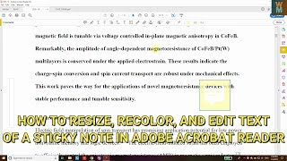 How To Resize Recolor And Edit Text Of A Sticky Note In Adobe Acrobat Reader - Youtube